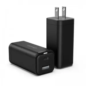 双快速充电 这款 2 端口 PD 壁式充电器具有先进的双充电端口,可同时为两个设备提供全速充电。先进的氮化镓(GaN)技术提高了充电效率,且不牺牲一瓦的充电功率。