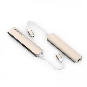 这款 5 合 1 USB C 集线器适配器 GN22E 是一款带有 USB-C 电缆的 USB C 设备专用扩展适配器,通过 Type C 电缆扩展 2 个 USB 3.0 端口、1 个 HDMI 接口、1 个 SD 接口和 1 个 micro SD 接口。该产品还内置Type-C母口,支持移动设备充电。该产品体积小巧,外观时尚,方便携带。是一款适用于MacBook等Type-C接口电脑及其他Type C口设备的扩展配件。